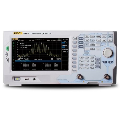 Анализатор спектра DSA832  - это прибор с небольшими размерами и весом, имеющий отличное соотношение цены и возможностей. Цифровая технология ПЧ обеспечивает исключительную производительность и стабильность при анализе спектра. В анализаторе спектра DSA832 имеется возможность расширенных измерений мощности, гармоник, шумов и искажений, ЭМИ измерений, а опциональный трекинг-генератор позволяет использовать анализатор спектра Rigol DSA832 для измерения S-параметров.