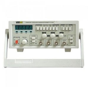 Прибор обеспечивает формирование сигналов прямоугольной, треугольной, синусоидальной формы, а также импульсов TTL уровней в диапазоне частот от 0.03 Гц до 3 МГц.