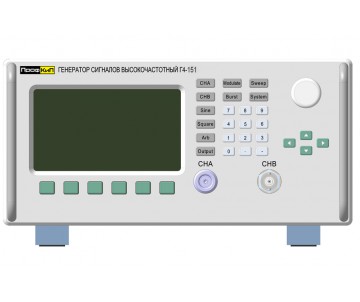 Генератор сигналов высокочастотный ПрофКиП Г4-151 предназначен для воспроизведения высокостабильных по частоте сигналов синусоидальной и прямоугольной формы с различными видами модуляции. На дополнительном выходе генераторы воспроизводят сигналы синусоидальной, прямоугольной и произвольной форм с регулируемым базовым смещением. Кроме того генераторы по основному выходу обеспечивают работу в режиме свипирования - генератора качающейся частоты. Оба выхода у генераторов могут включаться/отключаться независимо, а также работать одновременно. Дополнительно генераторы оснащены выходом TTL уровня. Генератор рассчитан для работы в лабораториях, цехах и ремонтных мастерских, в том числе и подвижных. Прибор широко применяется при разработке, производстве, эксплуатации и ремонте средств связи, имеет низкий уровень амплитудных и фазовых шумов вблизи несущей.