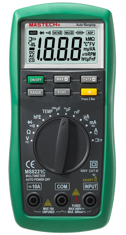 Перем. ток (клещи-приставка) | 200 А/2000 А | ±(1.5% + 3) |
