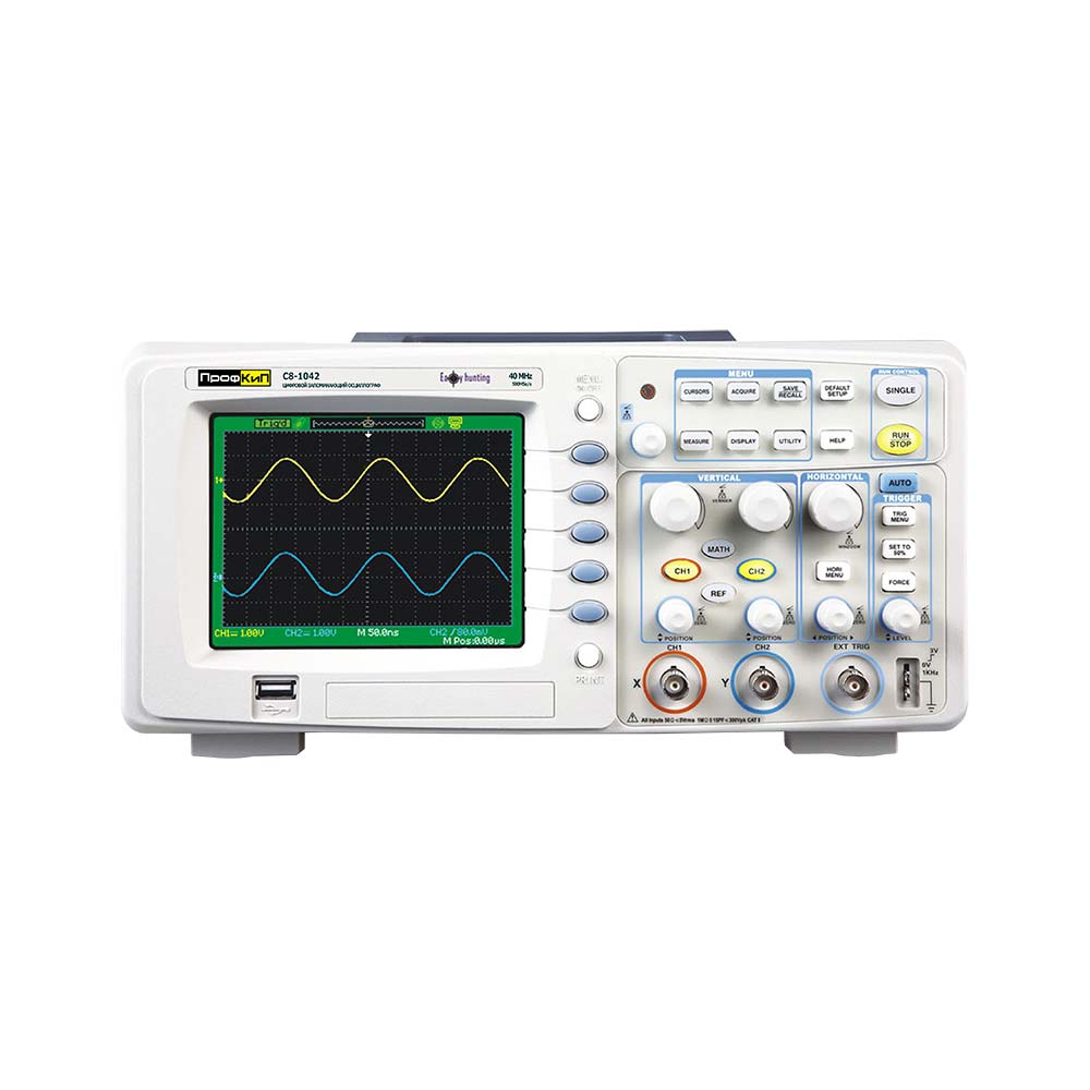 Осциллограф цифровой ПРОФКИП С8-1042 имеет цветной ЖКИ экран, меню прибора содержит набор цветовых схем, имеется поддержка русского языка. Органы управления отличаются эргономичностью и имеют удобное расположение. Режимы работы позволяют осуществлять одновременное наблюдение некогерентных сигналов, так же возможно использование различных типов синхронизации.