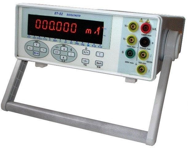 Вольтметр универсальный B7-82 предназначен для измерения напряжения постоянного тока и силы постоянного тока, среднего квадратичного значения напряжения переменного тока, сопротивления постоянному току, частоты и периода электрических сигналов и обеспечивающих математическую и логическую обработку результатов измерений.