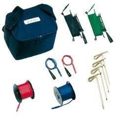 Комплект для измерения сопротивления заземления содержит 50-метровые измерительные провода и зонды для забивки в землю и помещен в мягкую сумку для переноски. Используется совместно с приборами серии Smartec.
