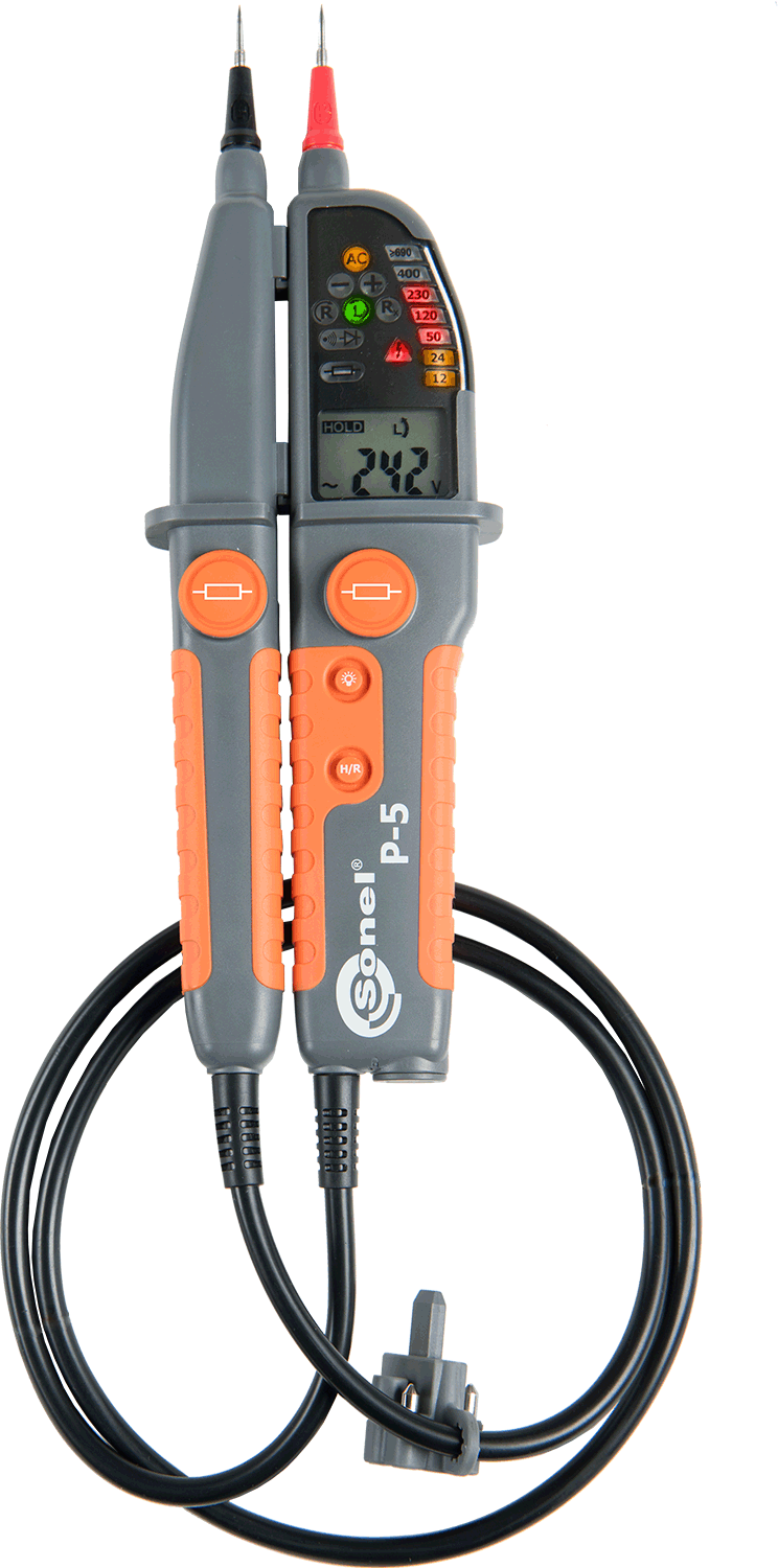 Измеритель напряжения P-5 предназначен для измерения напряжения постоянного/переменного тока, сопротивления, а также проверки исправности УЗО.